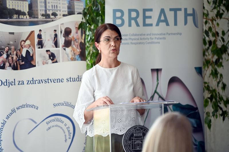 This was followed by a panel discussion involving five speakers from different fields: a doctor, a physiotherapist, a nurse, a patient and a student. Moderated by a project representative, the discussion focused on the global and national challenges in dealing with CRD. Key topics included epidemiological trends in Croatia, the EU and worldwide, the effectiveness of national strategies, the role of rehabilitation in the treatment of CRD and the competencies of healthcare professionals. The exchange of experiences provided valuable insights into the current status and future needs of the healthcare system.