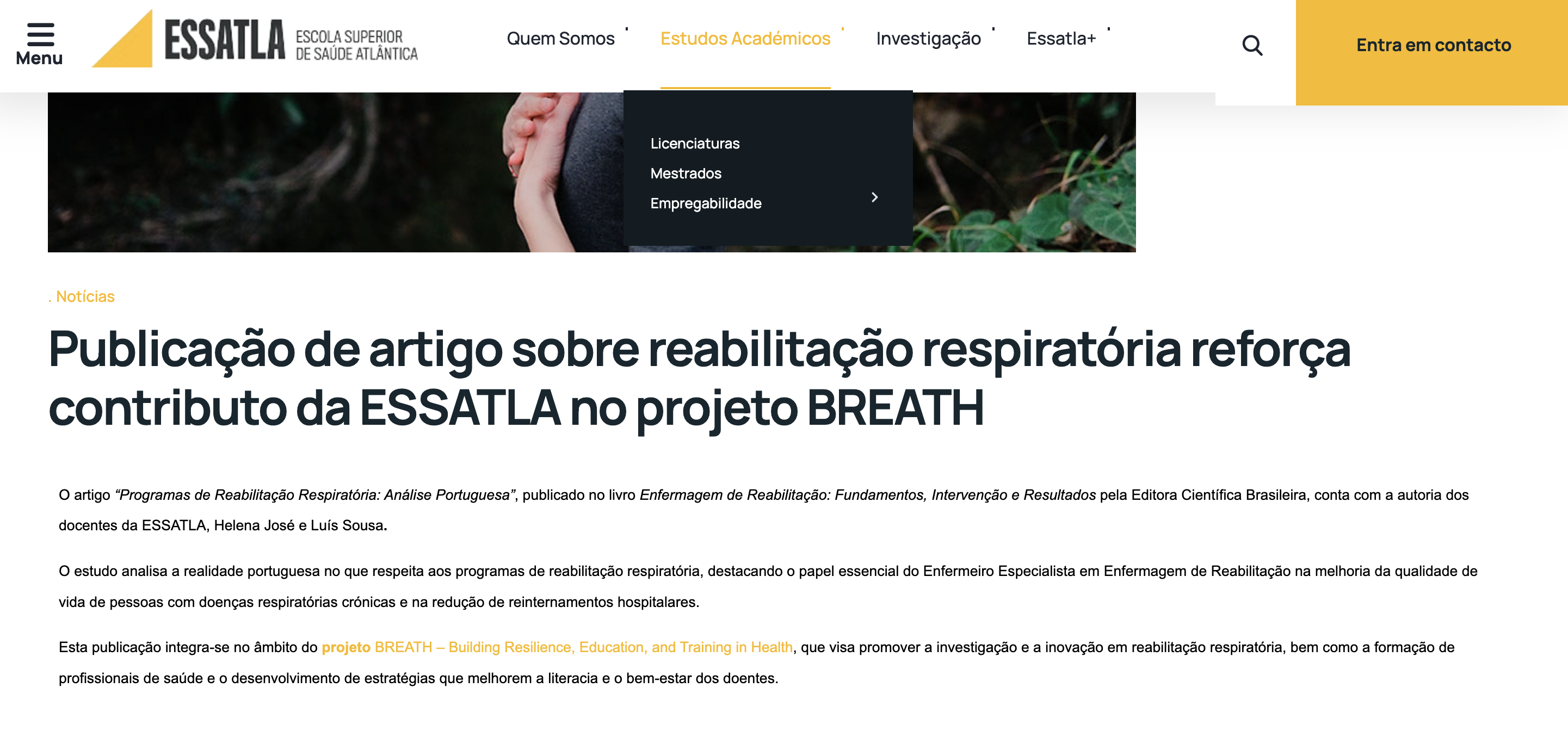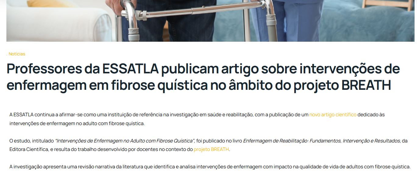 The faculty from ESSATLA published a new scientific article regarding the findings of the BREATH project in the book “Rehabilitation Nursing: Fundamentals, Intervention and Results” by Editora Científica Brasileira.