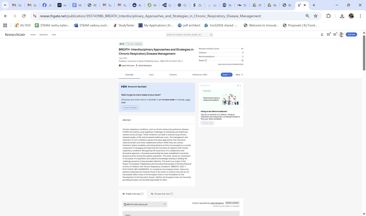 Researchers affiliated with the project have uploaded and linked the publication on their ResearchGate profiles, making it accessible to a global network of academics, clinicians and practitioners who use the platform for discovering, sharing and discussing scientific work. ResearchGate’s interactive features—such as recommendations, downloads, project followership and citation tracking—help maintain continuous engagement with the publication, ensuring that it remains active within relevant scientific communities. By circulating the BREATH results through ResearchGate, Klaipeda University researchers enable professionals in respiratory care, public health, rehabilitation and education to benefit from the project’s findings and integrate them into their own research and practice. This ongoing visibility supports new collaborations, increases the publication’s academic impact and ensures that the BREATH project continues to contribute to knowledge exchange long after its completion.