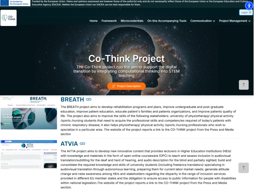The CO-THINK project has the aim to develop a functional STEAM approach for pre-service teacher training with a gender perspective and to foster competence in teaching computational thinking and to supports the digital transition by integrating computational thinking into STEM teaching. The website of the project reports a link to the BREATH project from the Press and Media section.