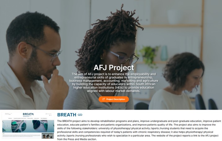 The AFJ project has the aim to enhance the employability and entrepreneurial skills of graduates in entrepreneurship, business management, accounting, marketing and agriculture by building the capacity of educators within South African higher education institutions (HEIs) to provide education aligned with labour market demands. The website of the project reports a link to the BREATH project from the Press and Media section.